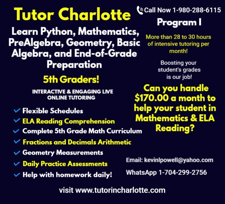 Overcrowded Classrooms: In some elementary schools, 5th-grade math classes house between 26 and 34 students. Parents complain that teachers cannot provide the individual attention required for complex 5th-grade concepts like multi-digit division and fraction operations. But Dr. Kevin L. Powell and Tutor Charlotte can do 1 on 1 tutoring and give your student all the time they need to learn the complexities of all levels of math.